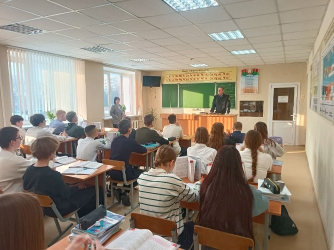 В рамках единого дня информирования в 8 классе Брестского государственного областного училища олимпийского резерва прошла встреча с инспектором ИДН ОВД администрации Ленинского района г. Бреста Александром Сергеевичем Наумовцом.