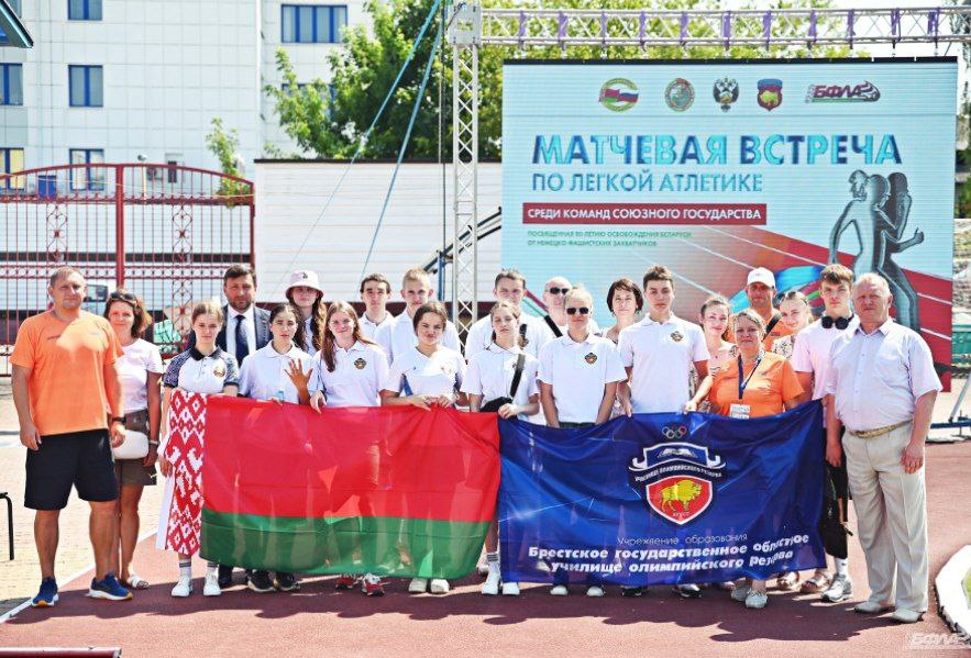 16 июня на ОСК «Брестский» учащиеся и коллектив Брестского государственного областного училища олимпийского резерва приняли участие в торжественном открытие матчевой встречи по легкой атлетике среди команд Союзного государства, посвященной 80-летию освобождения Беларуси от немецко фашистских захватчиков.