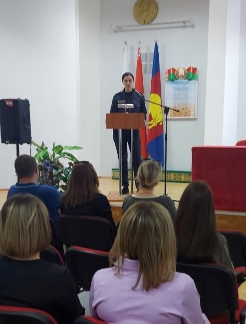 Инспектор рассказал родителям об основных пунктах законодательства Республики Беларусь, которые касаются воспитания детей. Напомнил о необходимости соблюдать правила безопасного поведения. Также в своем выступлении участковый инспектор ИДН ознакомил родителей с некоторыми статьями Административного и Уголовного кодекса РБ и об ответственности, которая возлагается за их нарушение.