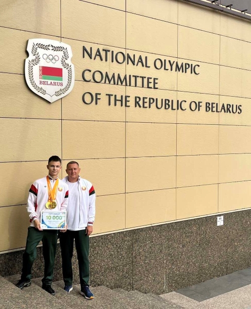 Ребят в Зале олимпийской славы поздравили Президент НОК Беларуси Виктор Лукашенко и Министр спорта и туризма Республики Беларусь Сергей Ковальчук.