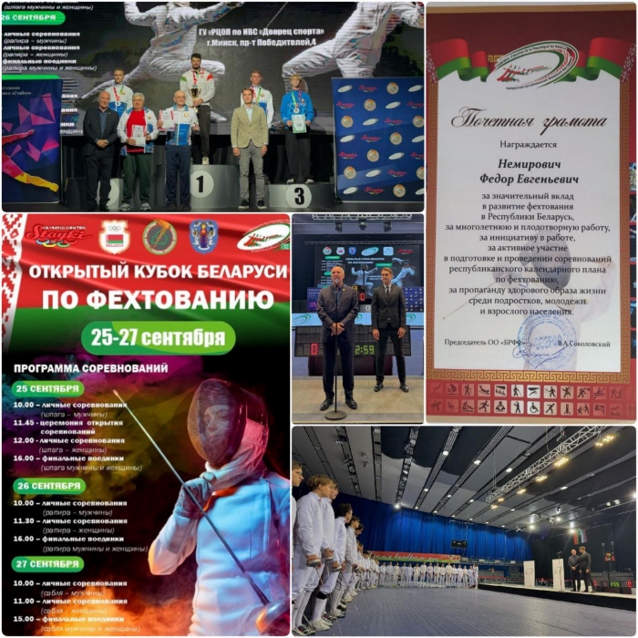 В рамках церемонии открытия почётной грамотой ОО «БРФФ» за значительный вклад в развитие фехтования в Республике Беларусь награждён заместитель директора по основной деятельности Брестского государственного областного училища олимпийского резерва Фёдор Евгеньевич Немирович.