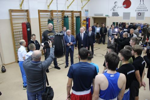 Перед встречей с юными спортсменами Петру Александровичу и Николаю Сергеевичу провели экскурсию по учебному заведению, показали спортивную базу учреждения и познакомили с условиями быта воспитанников.