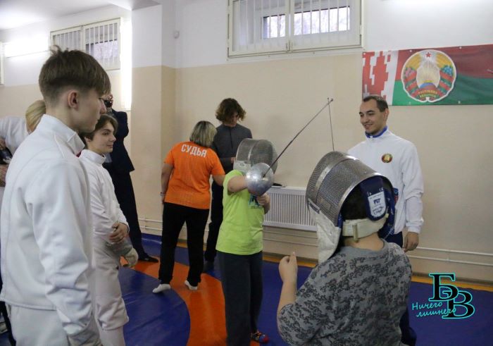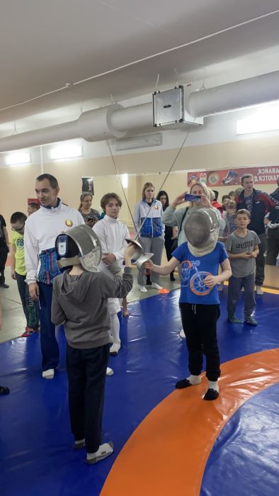 Конкурсно-игровая программа началась с показательного выступления наших обучающихся отделения фехтование, а также мини-беседы тренера-преподавателя Гетманчука Е.А. Ребята не только смотрели поединки, но еще была возможность надеть маску, подержать в руке саблю или рапиру.