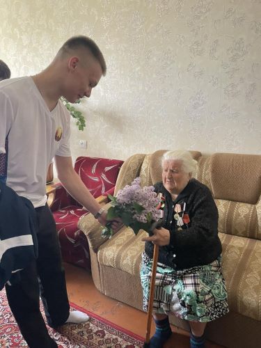 Слова благодарности и поздравления от учащихся Брестского государственного областного училища олимпийского резерва в преддверии праздника Дня Победы 7 мая приняла столетняя жительница города Бреста, ветеран Великой Отечественной войны Мартынюк Нина Семёновна.