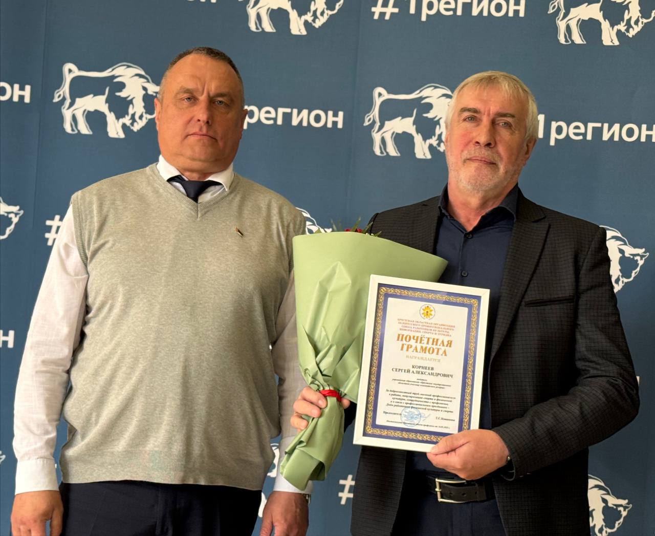 Почетной грамотой Брестского областного комитета профсоюза работников культуры, информации, спорта и туризма награждается - Корнеев Сергей Александрович, водитель УО «Брестское государственное областное училище олимпийского резерва»
