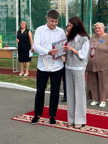 На торжественной линейке вручено удостоверение Мастера спорта Республики Беларусь Данилюк Яне.