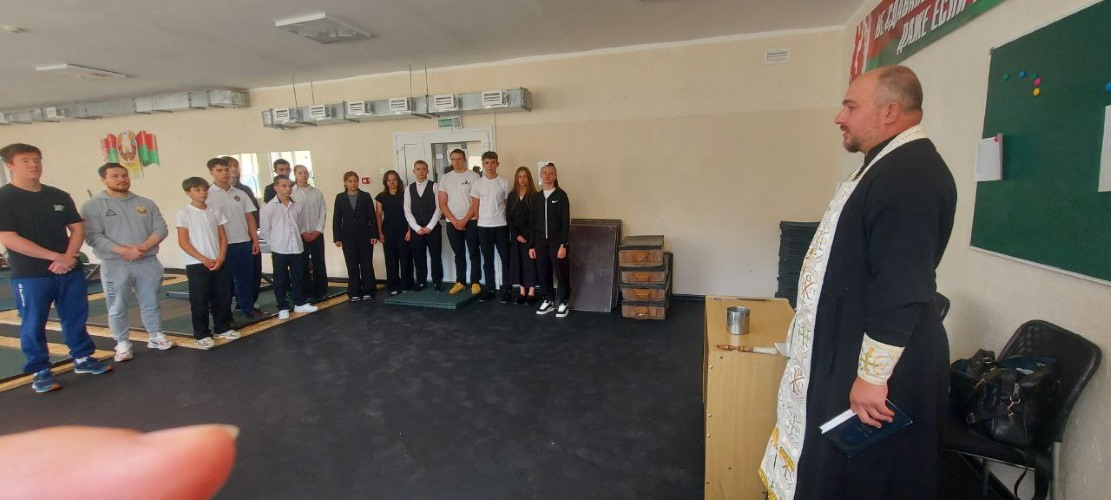 Учащиеся-спортсмены отделения тяжелой атлетики Брестского государственного областного училища олимпийского резерва провели встречу с настоятелем храма в честь святых Преподобных Александра Пересвета и Андрея Ослябив — иереем Евгением Казуком.