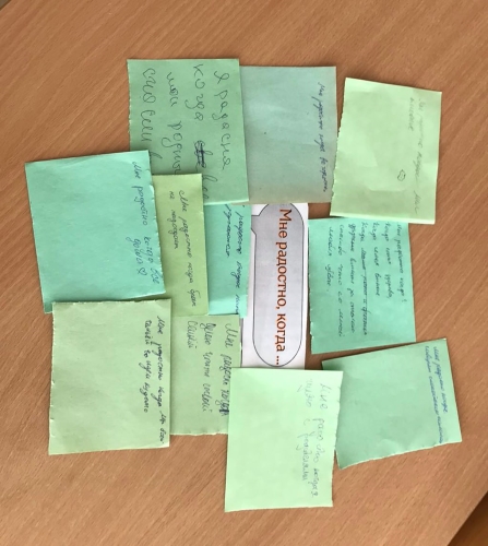 Продолжали фразы: «Мне радостно, когда…» «Мне грустно, когда…» — делясь личными переживаниями и семейными историями.