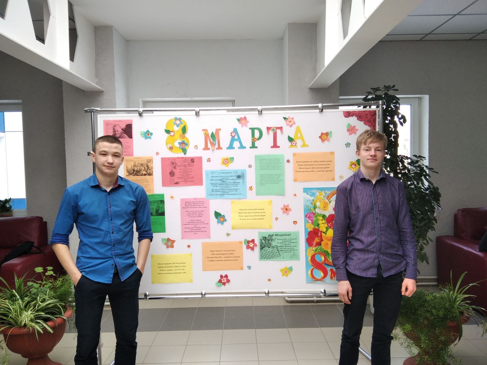 Дата публикации: 11 марта 2021. Опубликовано в Новости 2023. Международный женский день 2021 Конкурсно-игровая программа, посвященная Международному женскому дню, прошла 8 марта в общежитии училища. Назад Вперед