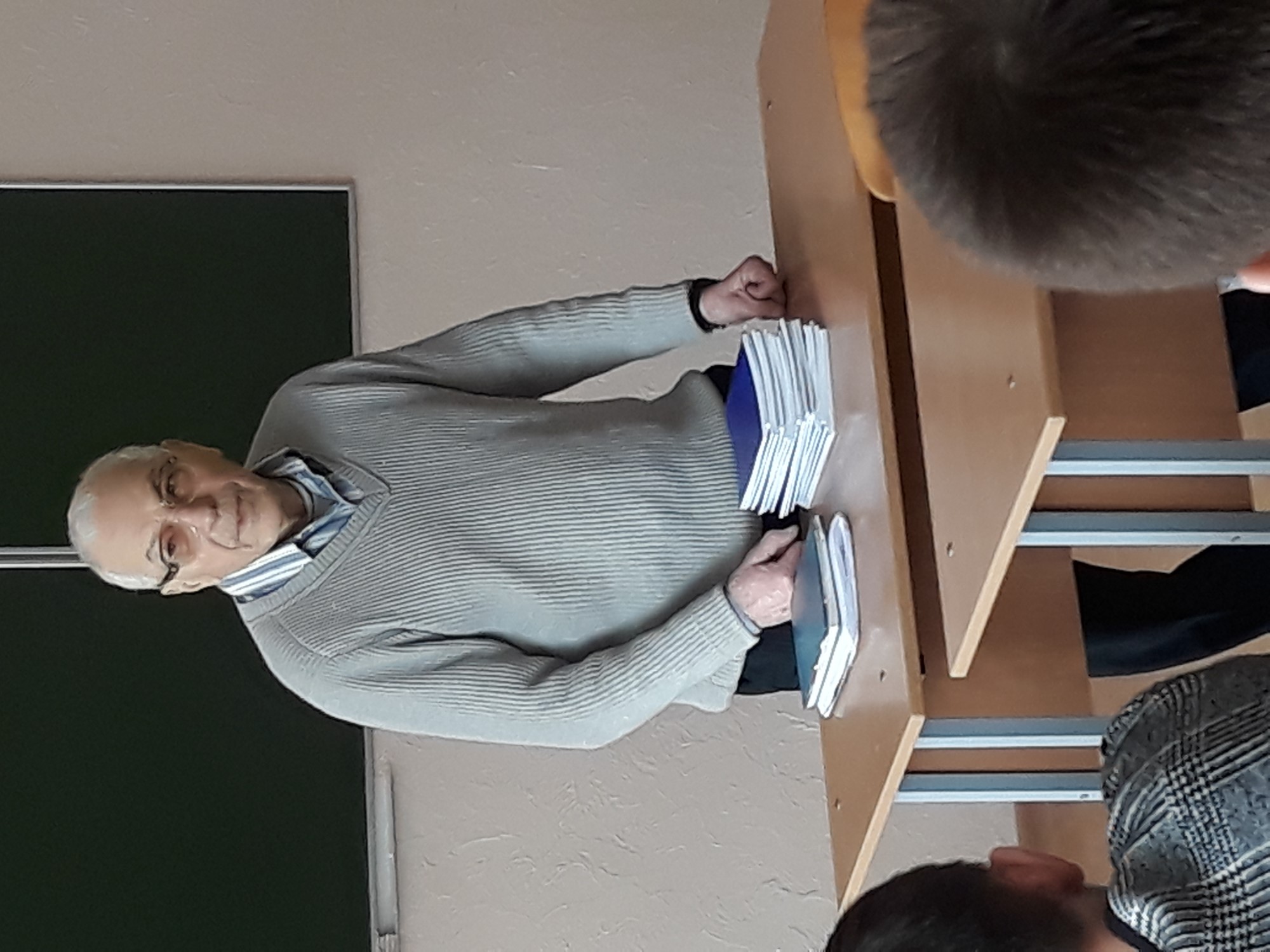 которые давно в стенах нашего училища стали традиционными, учащиеся 1 и 2-го курсов встретились с Юдицким Александром Моисеевичем. Александр Моисеевич - член Союза писателей Белоруссии и Белорусского союза журналистов. Автор публикаций в газетах «Советская Белоруссия», «Лiтаратура i мастацтва» и других республиканских изданий. Автор книг «Говорёнки», «Автостоянка», «Поезд остановил дымок… », «Лица. Судьба семьи в судьбе страны», «Встречи», «Беседа. «Встречи» и «Лица»: автографы».