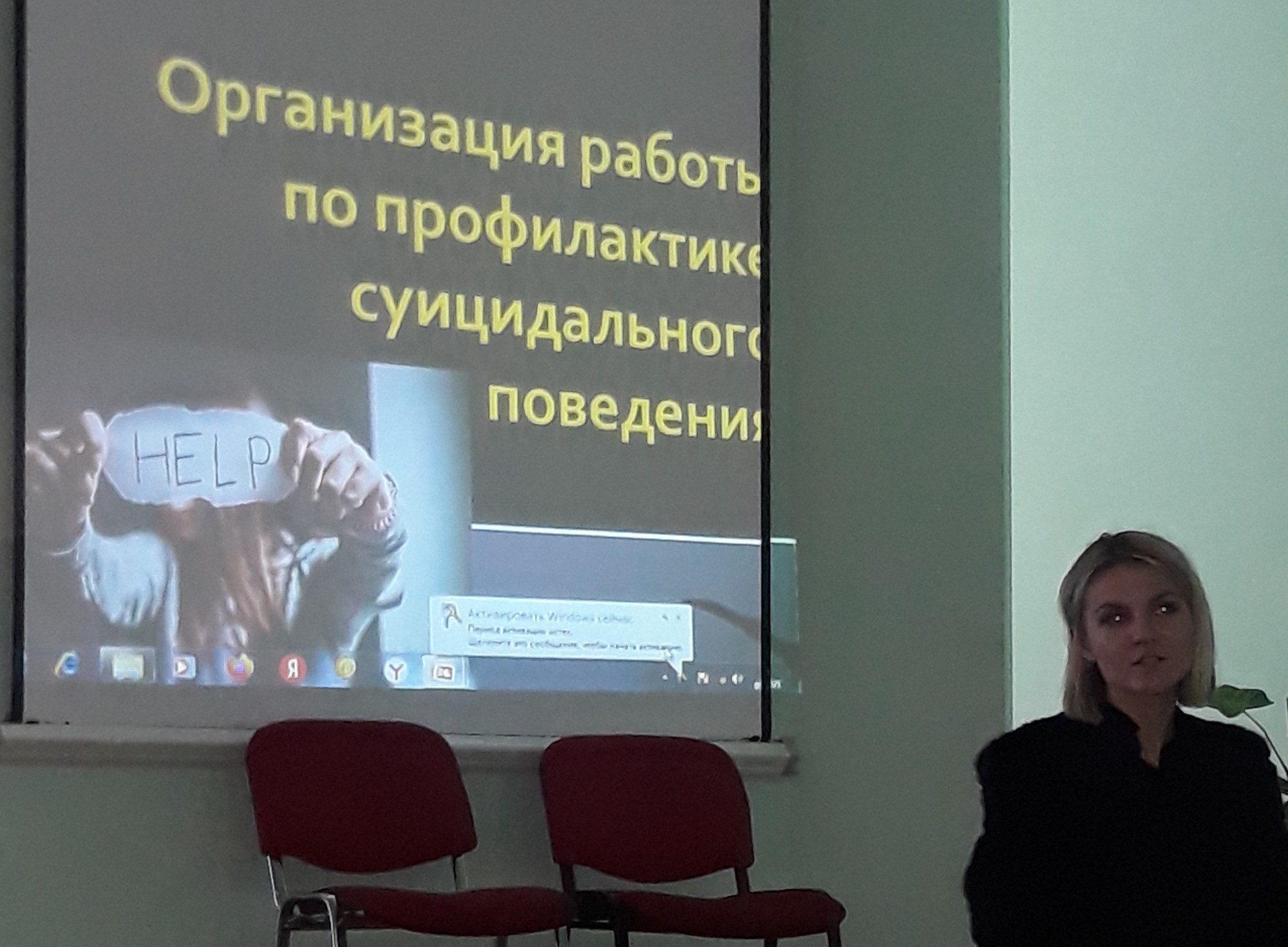 Дата публикации: 09 ноября 2021. Опубликовано в Новости 2023. Профилактика суицидального поведения В рамках работы методического объединения, прошел семинар по теме «Организация работы по профилактике суицидального поведения». Назад Вперед