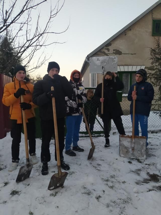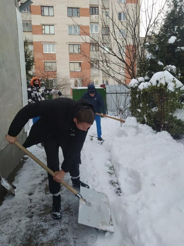 помогли очистить двор от снега жительнице города Бреста и бывшему работнику училища Таисии Александровне Родаковой. В течение учебного года волонтеры отряда "Забота" занимаются благотворительностью, оказывают помощь ветеранам, одиноким пенсионерам, пожелым гражданам микрорайона "Речица".