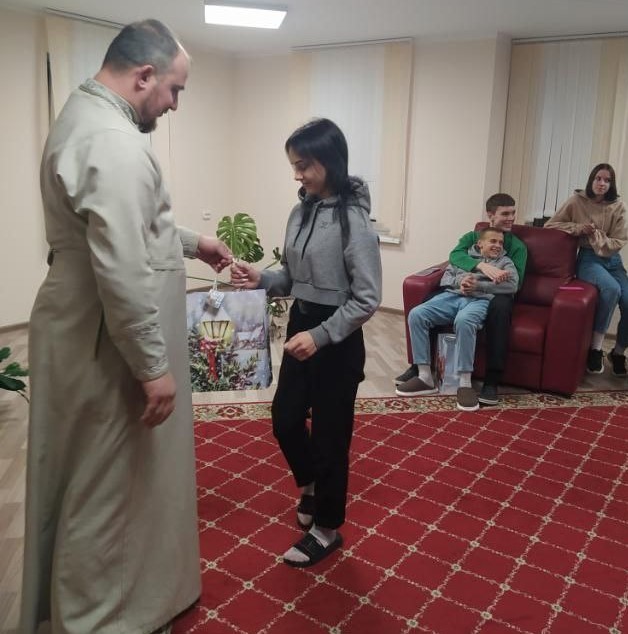 Он рассказал о значимости праздника Рождества Христова и его роли в формировании культуры белорусского народа, семейных традициях. В рамках благотворительной акции «Наши дети» отец Евгений поздравил всех детей и вручил подарки детям из многодетных и опекунских семей, детям сиротам.