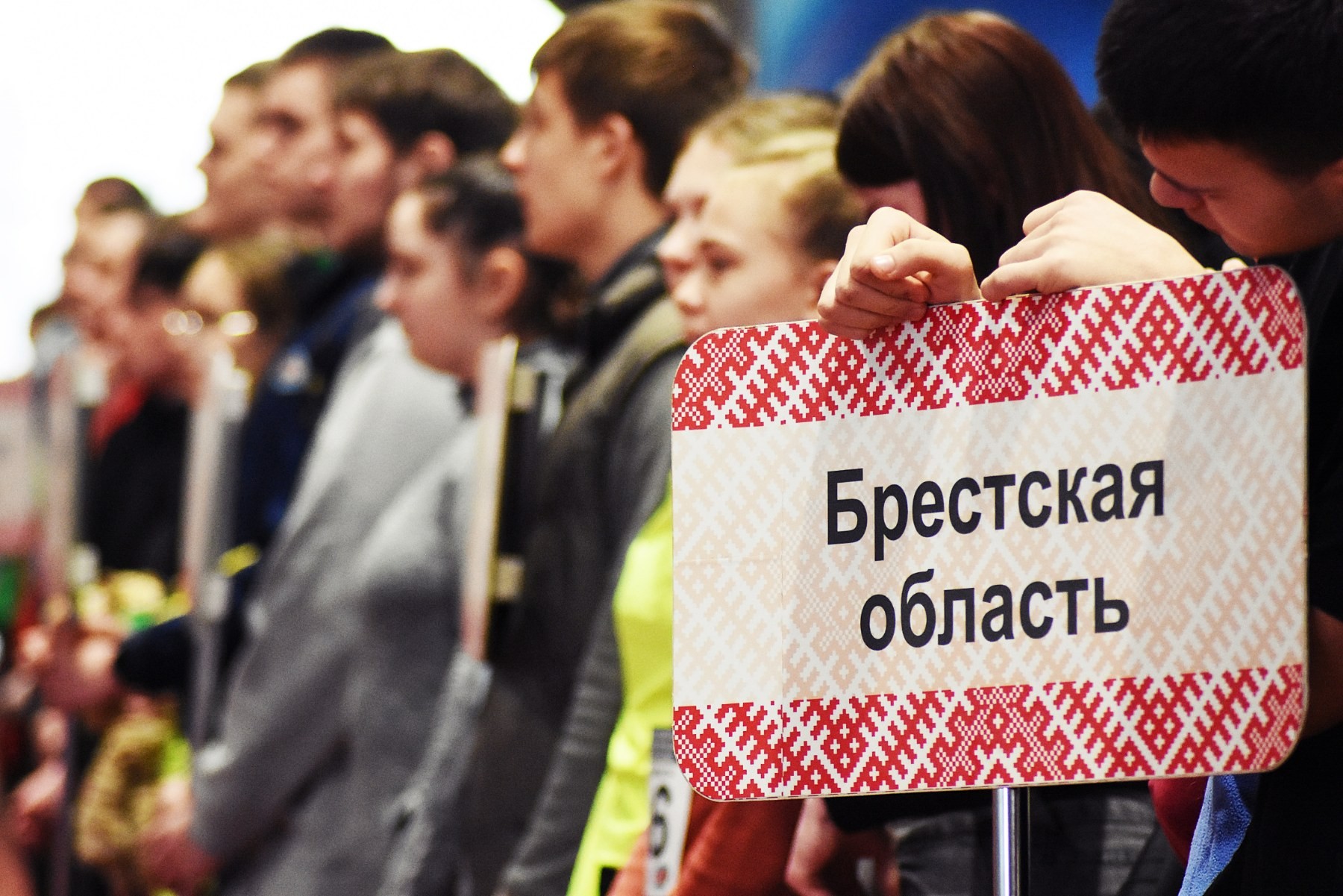 Спортсмены-учащиеся Брестского государственного областного училища олимпийского резерва на пьедестале почёта: