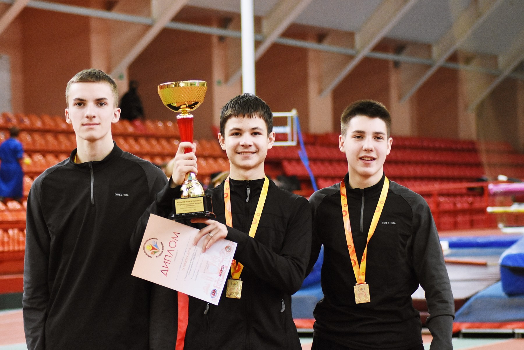 Спортсмены-учащиеся Брестского государственного областного училища олимпийского резерва на пьедестале почёта: