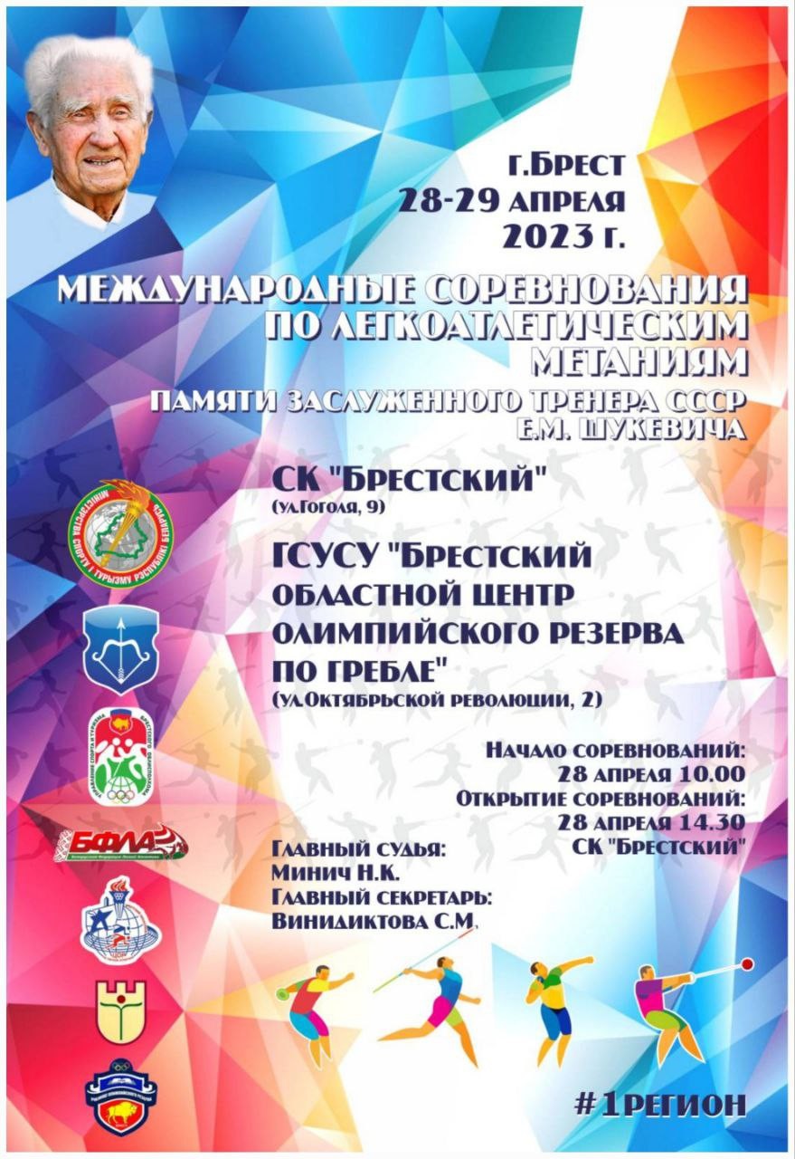 Спортсмены-учащиеся отделения лёгкой атлетики Брестского государственного областного училища олимпийского резерва на пьедестале почёта: 1 место - Бойко Елизавета - толкание ядра 2006-2007 г.р.; 1 место - Бойко Елизавета - метание диска 2006-2007 г.р.; 1 место - Винель Данила - толкание ядра 2004-2005 г.р.; 1 место - Дулько Серафим - метание диска 2008 и моложе; 1 место - Яромчик Кира - метание диска 2008 г.р. и моложе; 1 место - Яромчик Кира - толкание ядра 2008 г.р. и моложе; 2 место - Пытляк Александра - толкание ядра 2006-2007 г.р.; 2 место - Язовских Милана - метание копья 2008 г.р. и моложе; 2 место - Севастьянович Анастасия - метание копья 2004-2005 г.р.; 2 место - Винель Данила - метание диска 2004-2005 г.р.; 3 место - Сычевич Маргарита - метание копья 2008 г.р. и моложе; 3 место - Микульская Александра - метание диска 2004-2005 г.р.; 3 место - Хомич Анатолий - толкание ядра 2008 г.р. и моложе; 3 место - Хомич Анатолий - метание диска 2008 и моложе; 3 место - Желенговский Леонид - толкание ядра мужчины; 3 место - Петровец Владислав - метание копья 2008 г.р. и моложе. Лучшим спортсменом соревнований признан выпускник Брестского государственного областного училища олимпийского резерва Алексей Котковец показавший в метании копья результат 85.06 |