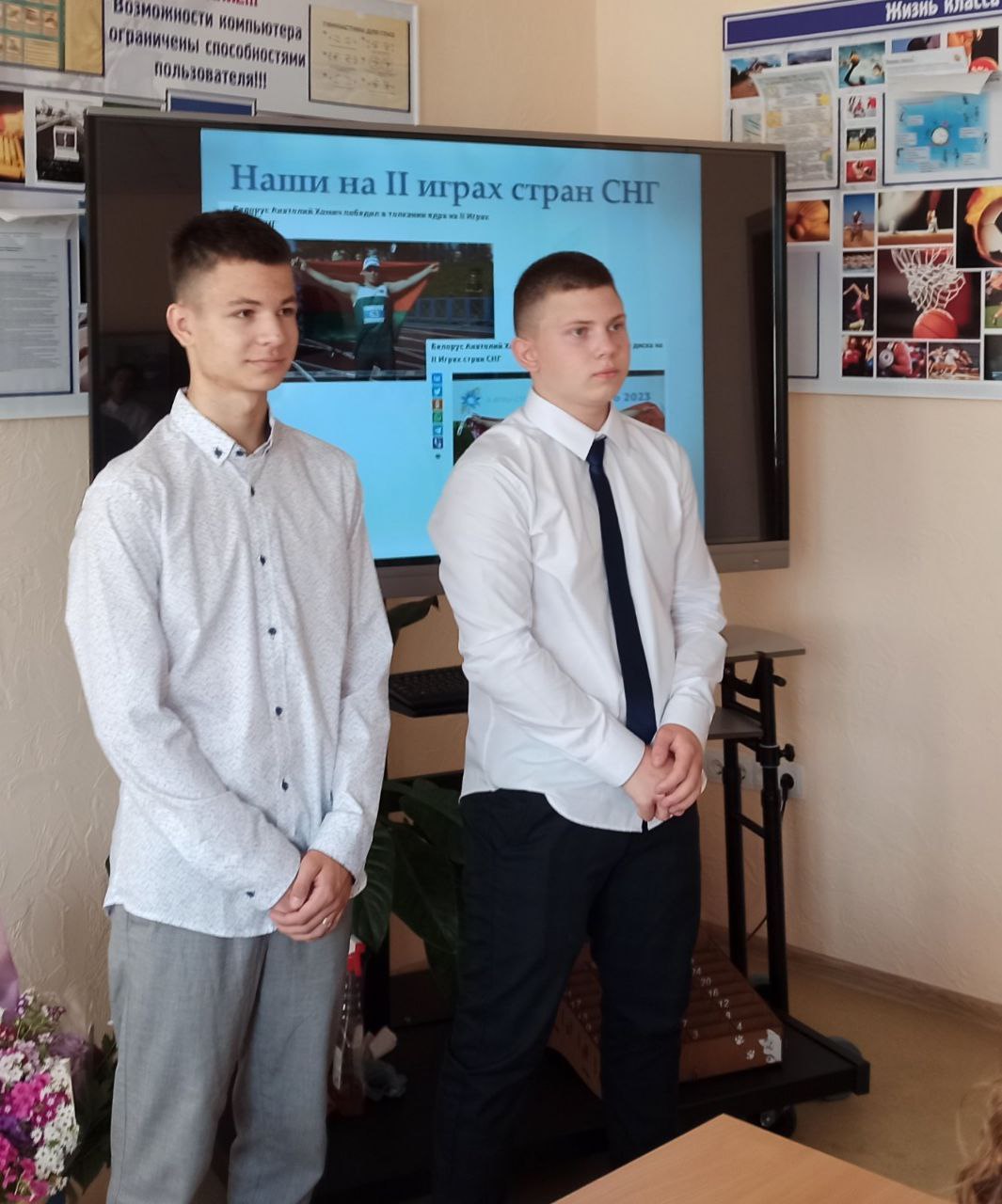 Единый урок «Беларусь и Я – диалог мира и созидания», посвящен Году мира и созидания прошел во всех классах и группах училища олимпийского резерва. Педагоги напомнили учащимся о том, что 2023 год объявлен Годом мира и созидания, акцентировали внимание на том, что мир, суверенитет и независимость для белорусского народа являются высшими ценностями. Обсудили достижения Республики Беларуси за мирные годы, мир и созидательный труд как условия благополучия и развития всей страны и каждого человека. Особое внимание было уделено II Играм стран СНГ, так как 12 учащихся-спортсменов приняли участие в соревнованиях, 11 стали победителями и призерами игр.