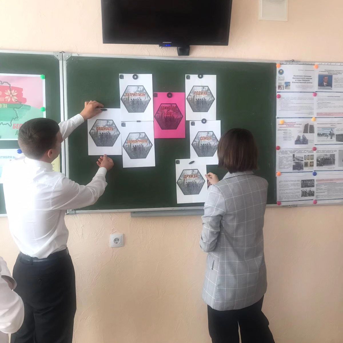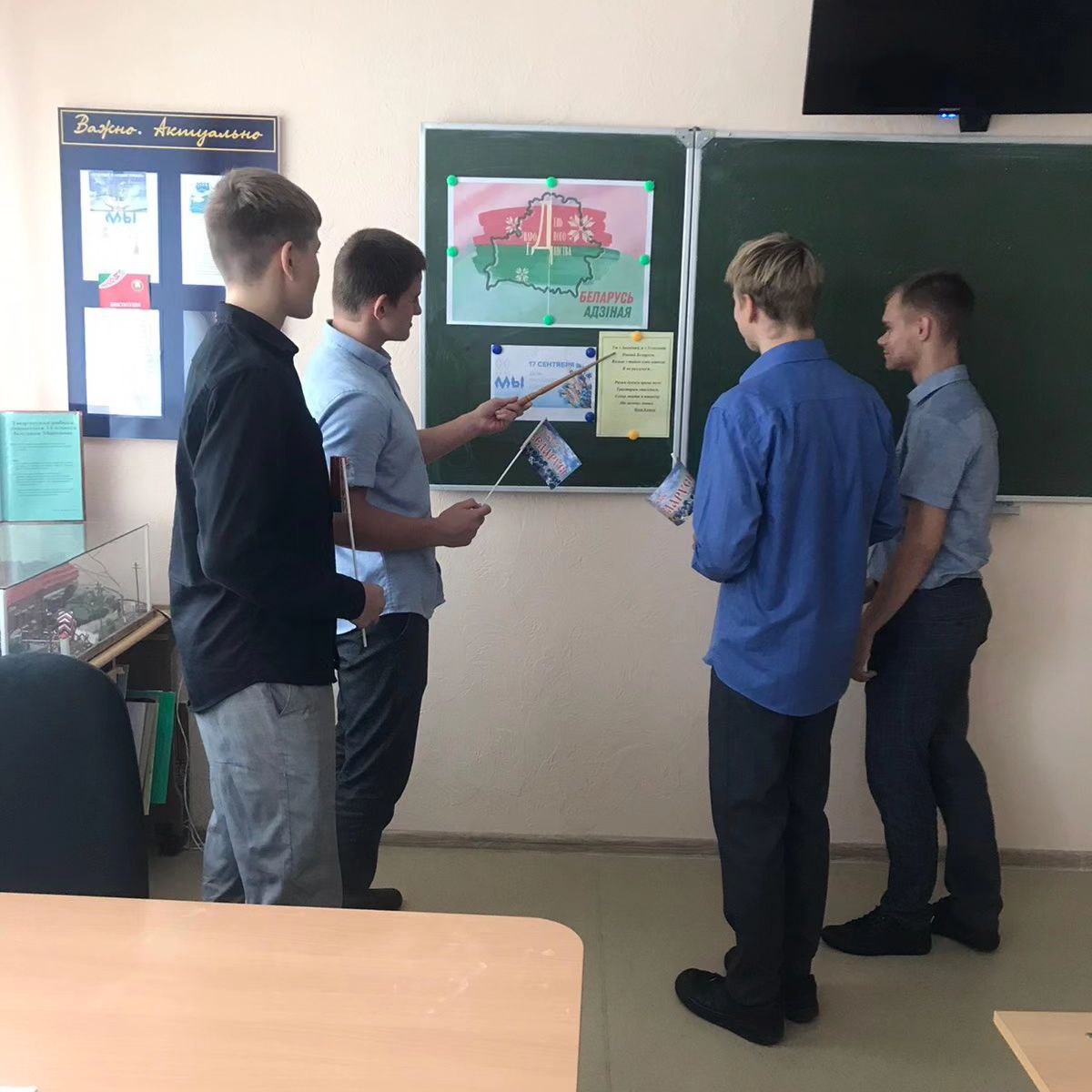 На уроке учащиеся-спортсмены говорили о том, что для них значит Родина, рассуждали о сути народного единства, высказывали мнение об объединяющих белорусский народ факторах, осуществили путешествие-экскурсию по улице 17 сентября в любимом городе Бресте, вспоминали страницы истории нашей страны, когда белорусы демонстрировали свое единство.
