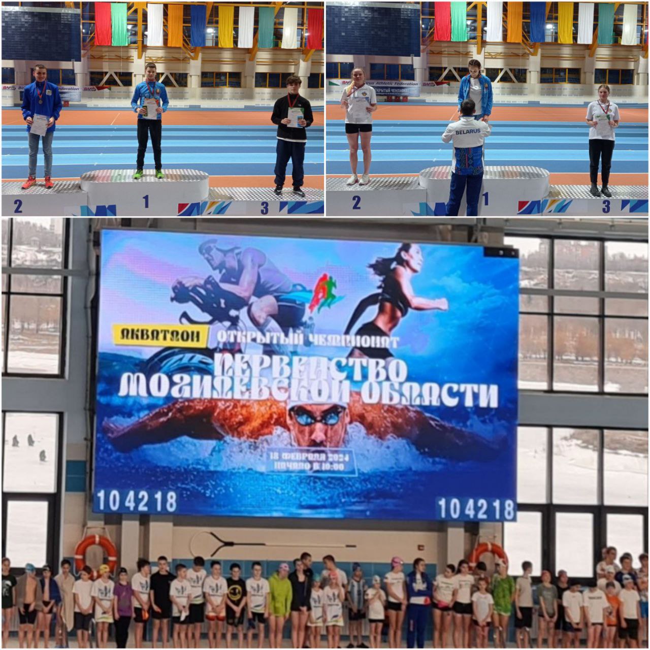 Открытый чемпионат и первенство Могилевской области по акватлону в программе республиканских соревнований прошло 18 февраля 2024 года в бассейне Могилевского областного центра олимпийского резерва по водным и гребным видам спорта и легкоатлетическом манеже спортивного комплекса «Олимпиец»