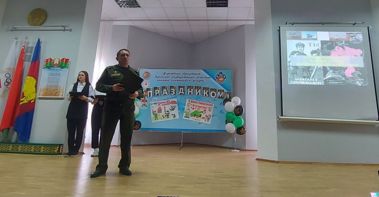 22 февраля 2024 года в Брестском государственном областном училище олимпийского резерва в рамках информационно-образовательного проекта «Школа Активного Гражданина» для учащихся прошел информационный час по теме «Родина моя Беларусь в лицах. Защитники Отечества» (о сотрудниках Вооруженных Сил, пограничной службы, таможенной службы, МЧС) с участием подполковника Минича Константина Ивановича, заместителя начальника направления призыва на военную службу военного комиссариата Брестской области.