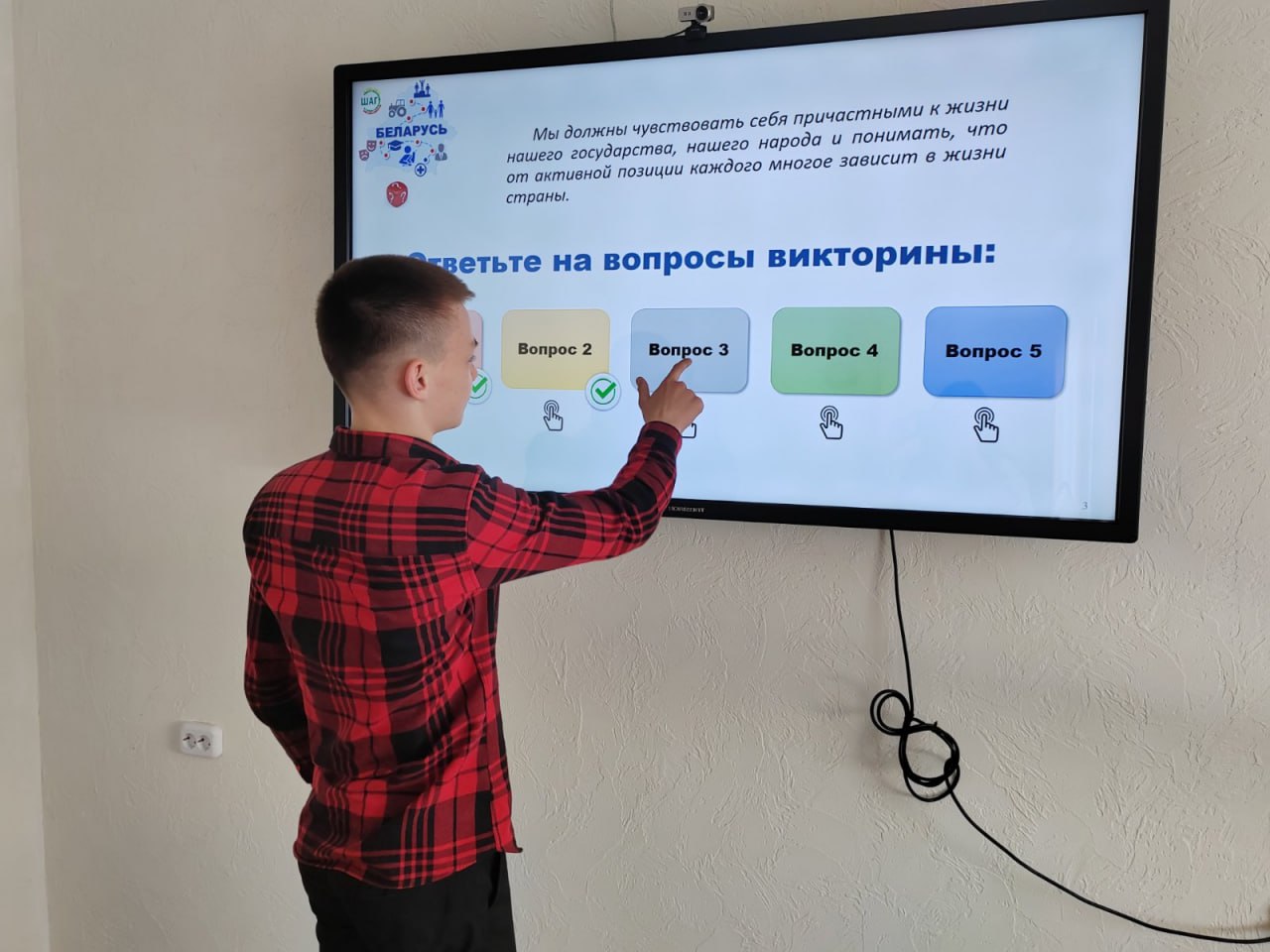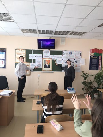 Были актуализированы знания о государственном управлении Республики Беларусь с помощью викторины "Мы узнаем". Особый интерес вызвала работа Молодежного парламента при Национальном собрании Республики Беларусь. Учащиеся ознакомились с известными государственными деятелями и их вкладом в развитие нашей страны. Пришли к выводу, что ежедневный добросовестный труд, забота о своей семье, активная жизненная позиция – это и есть черты, которые присущи гражданину и патриоту своей страны.
