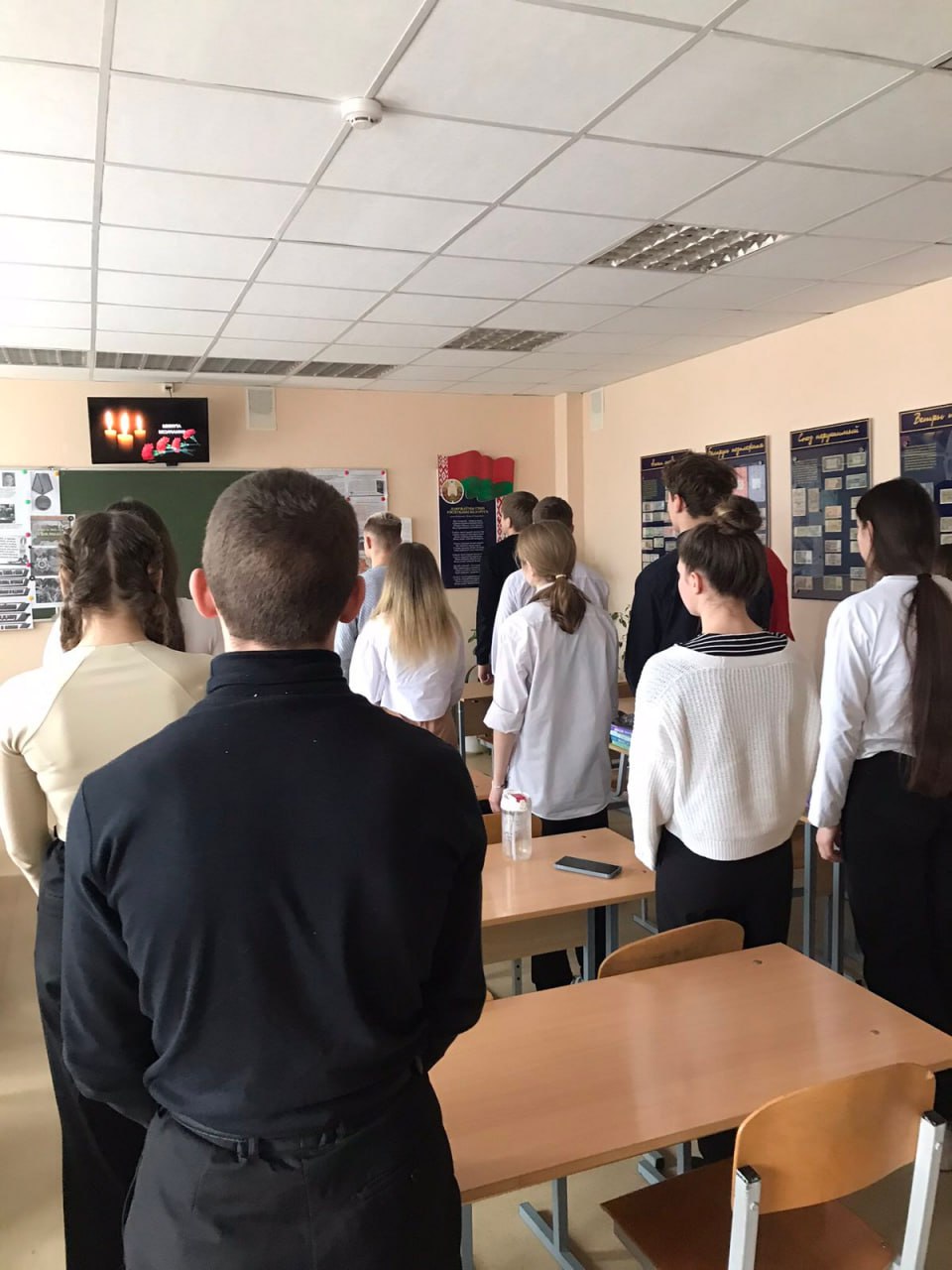 В 12.00 под звуки метронома обучающиеся и коллектив почтили память всех погибших Минутой молчания.