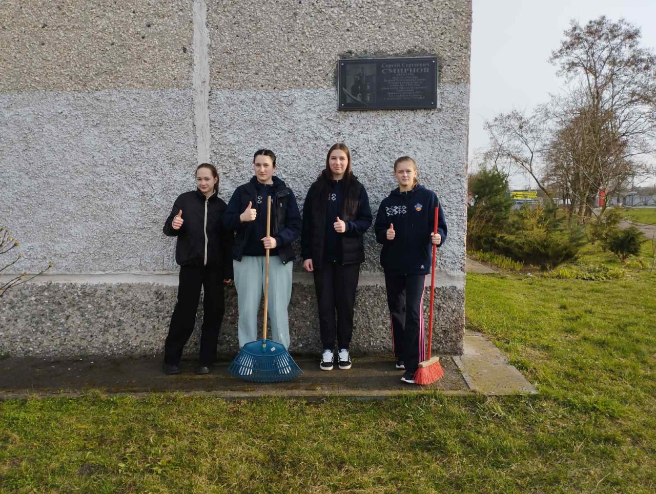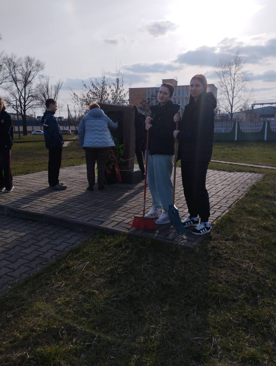 Ребята очистили территорию от опавших листьев и веток, собрали мусор, вычистили плиту памятника и мемориальной доски. Благодаря дружной и слаженной работе наведён порядок.