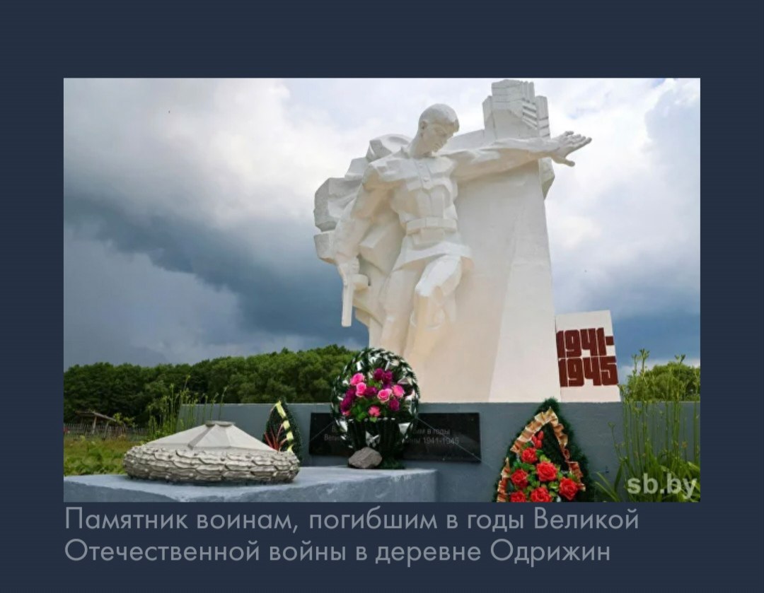 Дважды деревню Одрижин постигла судьба Хатыни, но несмотря на это многие жители деревни ушли в партизаны, были связными.