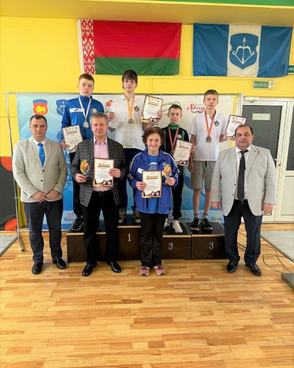 Учащиеся Брестского государственного областного училища олимпийского резерва на пьедестале почёта: