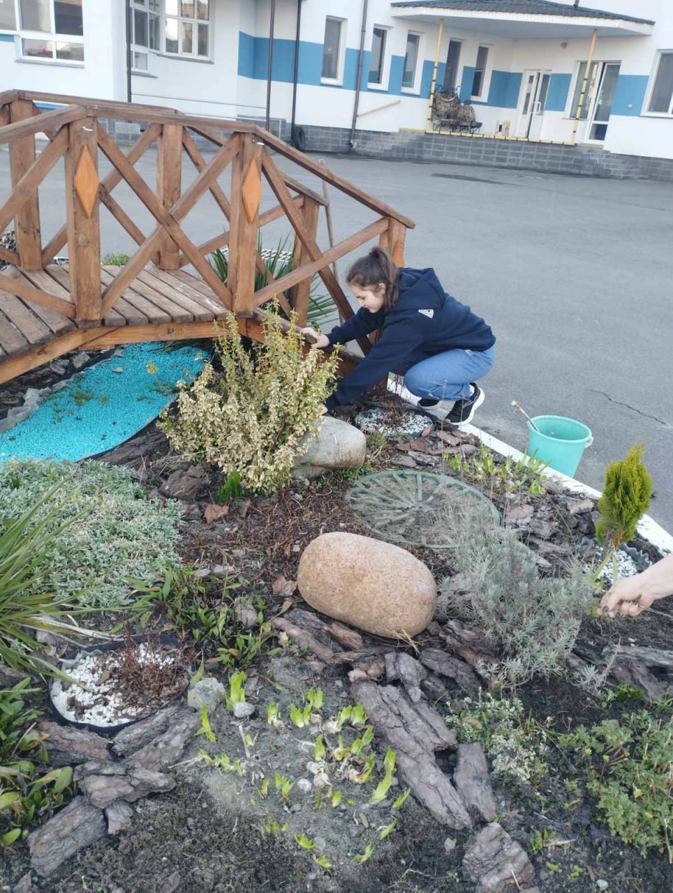 В результате убрана территория вокруг училища от листвы, сухой травы, поросли, проведена очистка цветников.