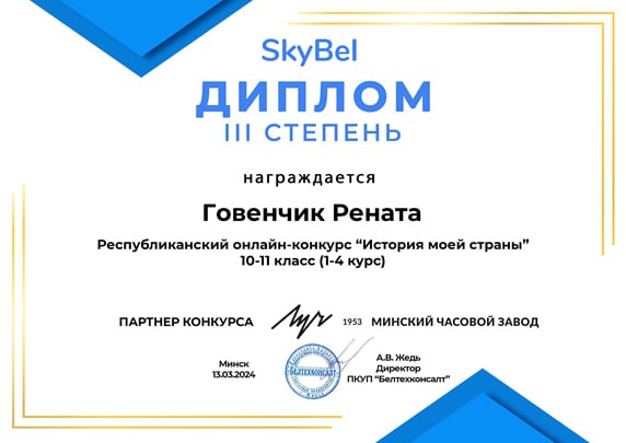 Учащиеся 10-11 классов Брестского государственного областного училища олимпийского резерва приняли участие в Республиканском онлайн-конкурсе "История моей страны", который проходил на Интернет – платформе "SkyBel".