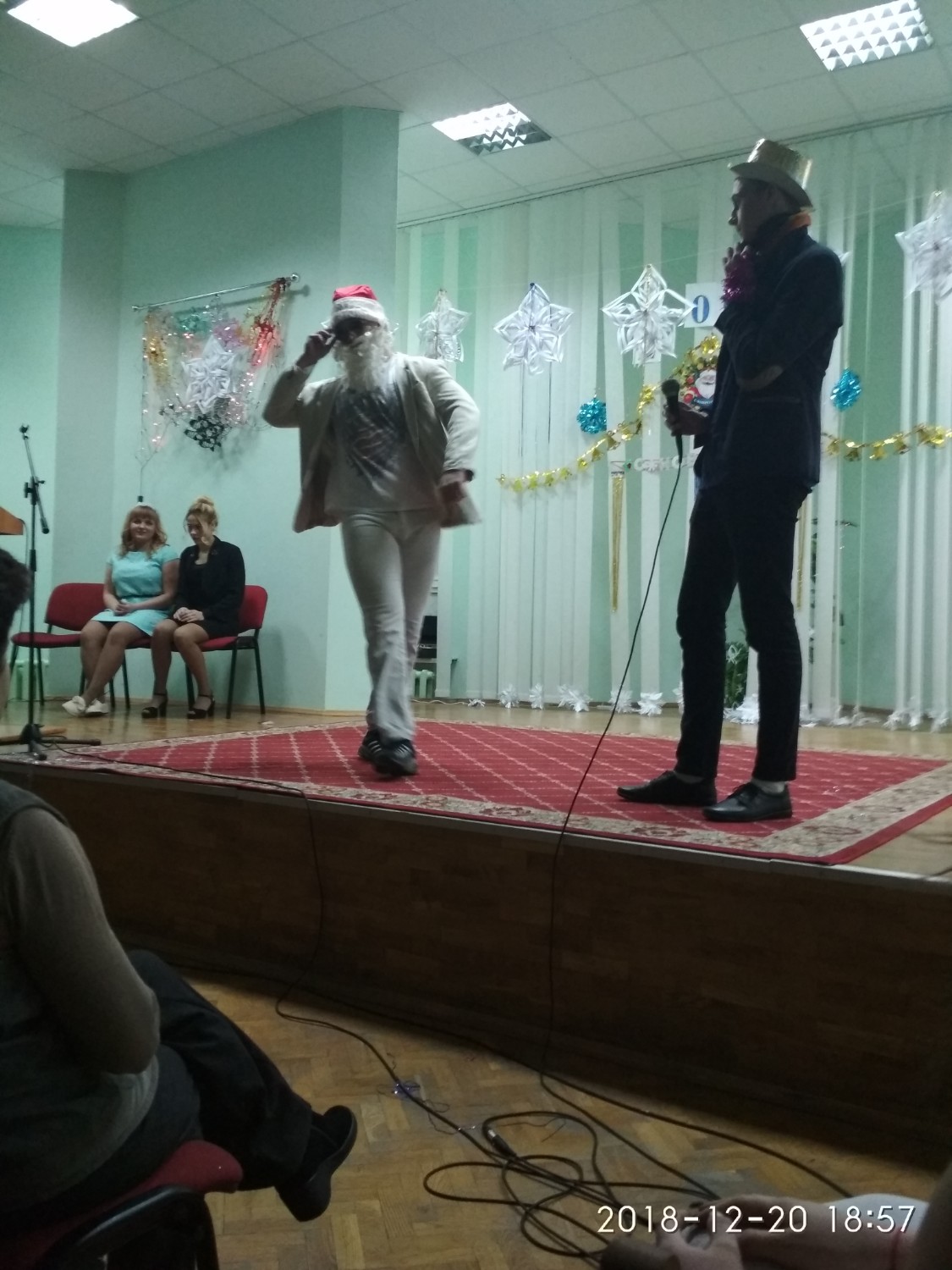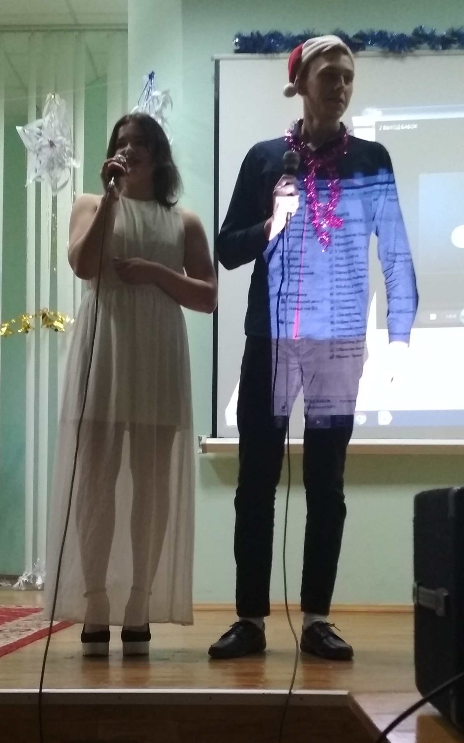 Дед Мороз – Перепелица Даниил,Снегурочка – Дышко Карина, ведущие – Мовчун Мария и Адамчук Дмитрий,