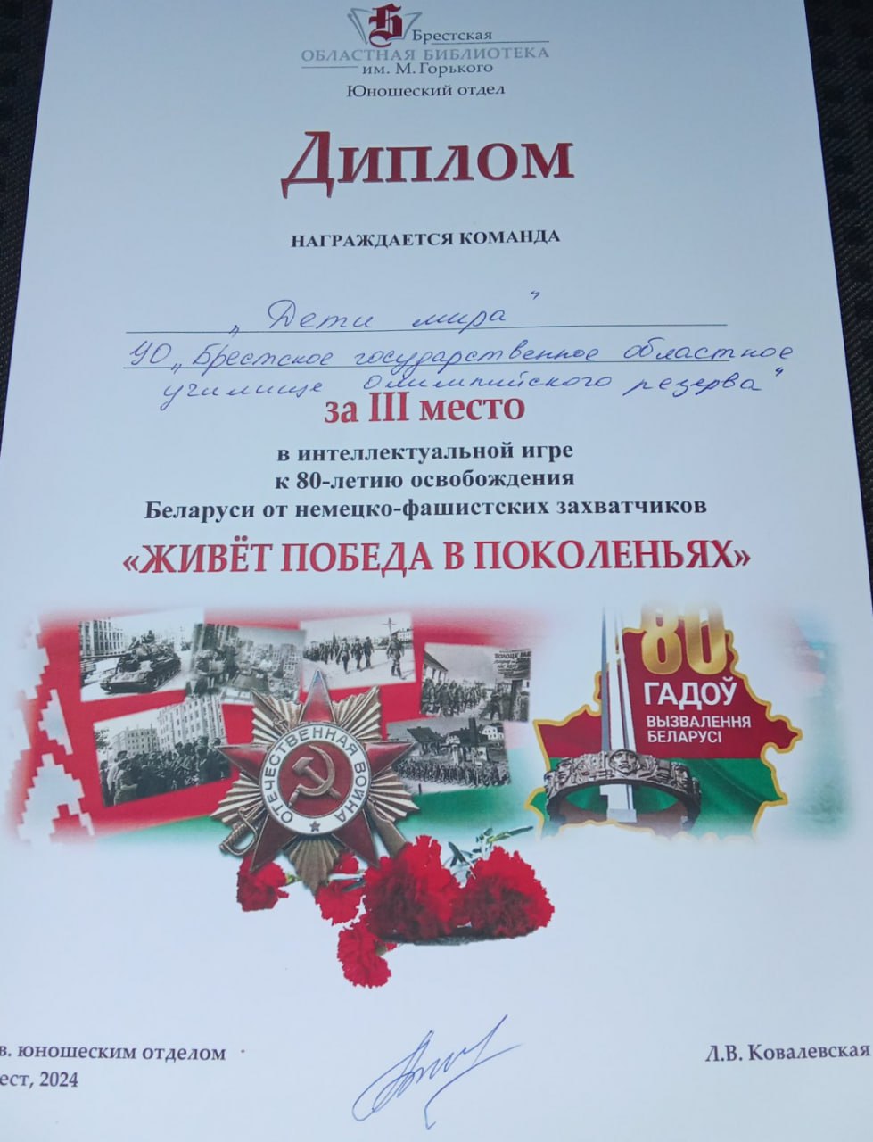В рамках мероприятий, посвященных 80-летию освобождения Республики Беларусь от немецко-фашистских захватчиков 7 мая 2024 в УК «Брестская областная библиотека имени М. Горького» прошли интеллектуальные игры «Живёт победа в поколениях».