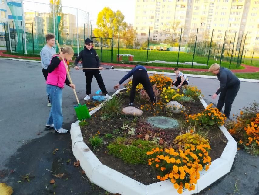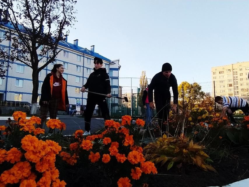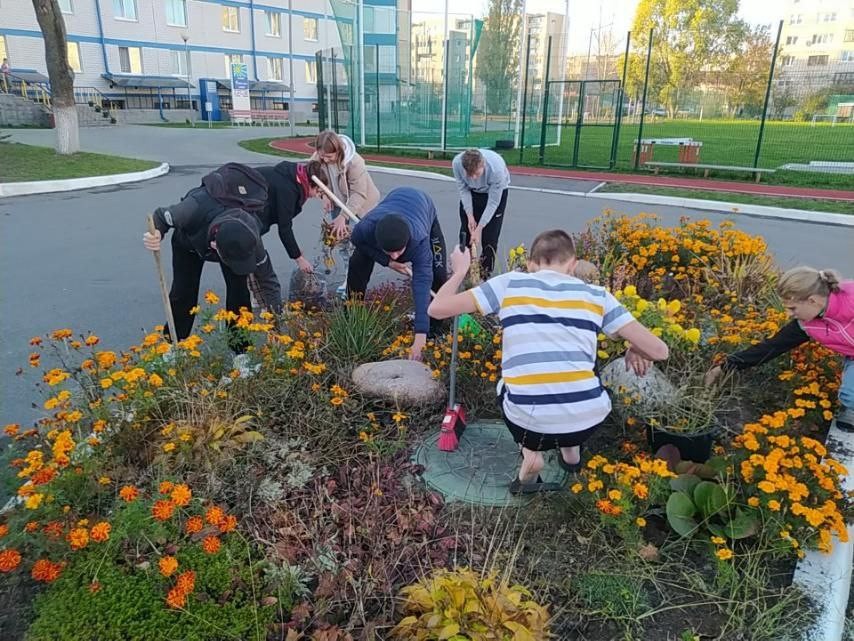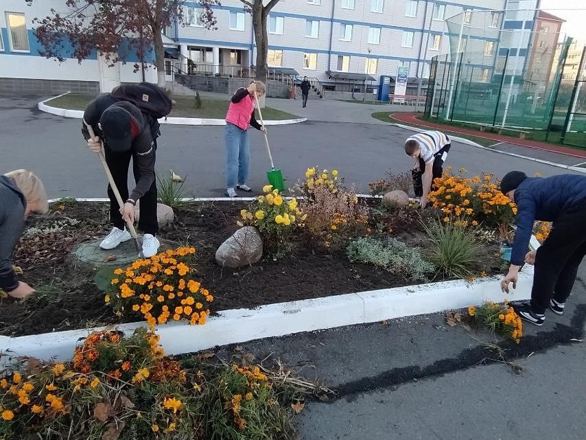 В период осенних каникул они убрали сухостой, подготовили клумбы к зимнему сезону, собрали семена цветов, убрали мусор с прилегающей территории.