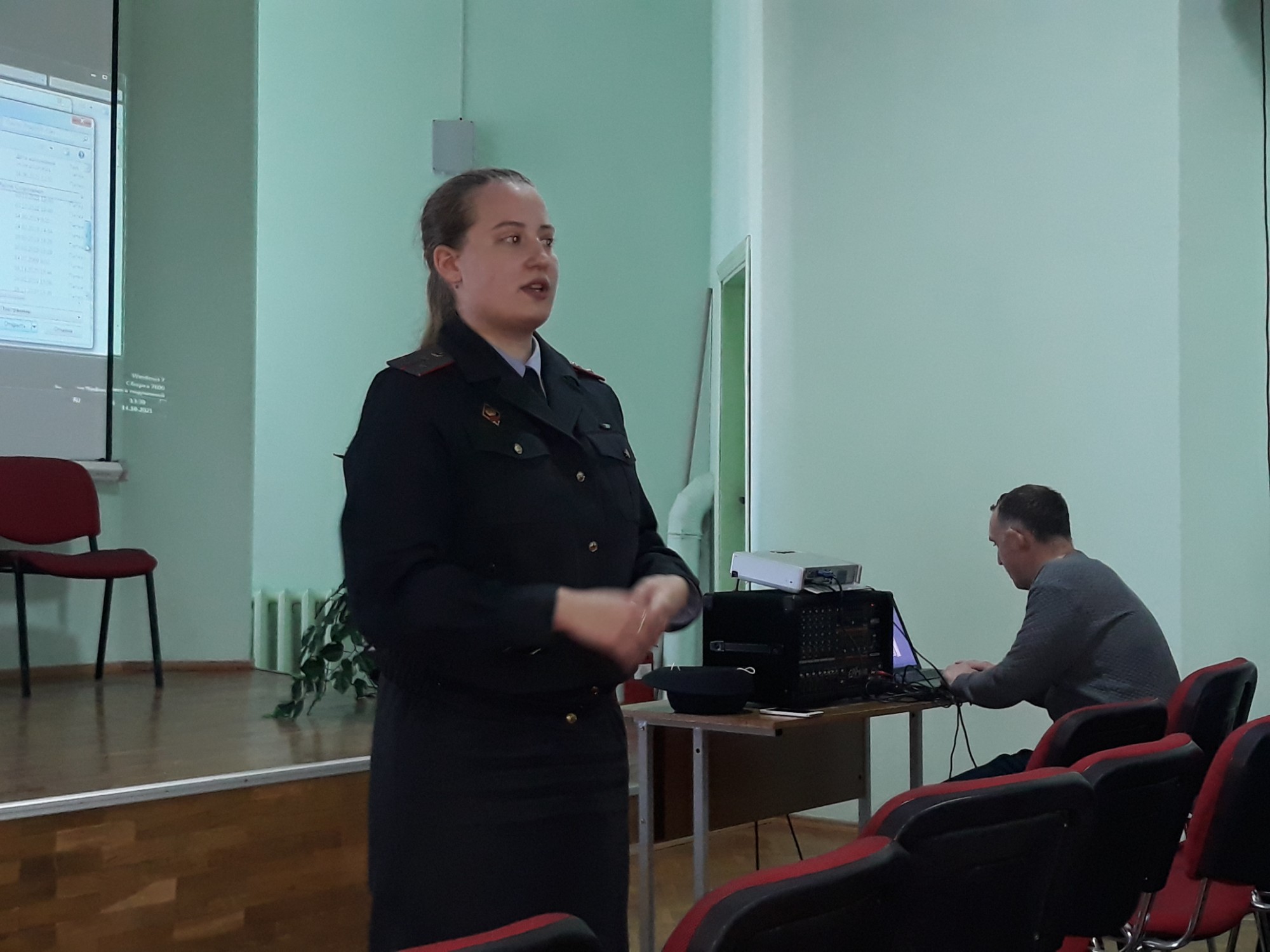 Дата публикации: 14 октября 2021. Опубликовано в Профориентационная работа. Встреча с сотрудником ИУОТ №1 14.10.2021г. прошла встреча выпускных классов училища с сотрудником ИУОТ №1 УДИН по Брестской области г. Бреста старшим лейтенантом милиции Тыщенко Таисией. Назад Вперед