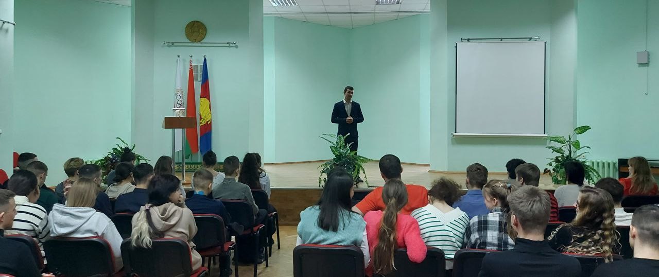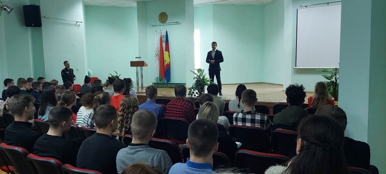 2 февраля 2023 с учащимися УО «Брестское государственное областное училище олимпийского резерва» сотрудники Ленинского (г. Бреста) отдела Департамента охраны МВД Республики Беларусь, старший инспектор по профессиональной подготовке Яковец Юрий Викторович и старший инспектор группы кадров Федорко Дмитрий Сергеевич провели профориентационную беседу.