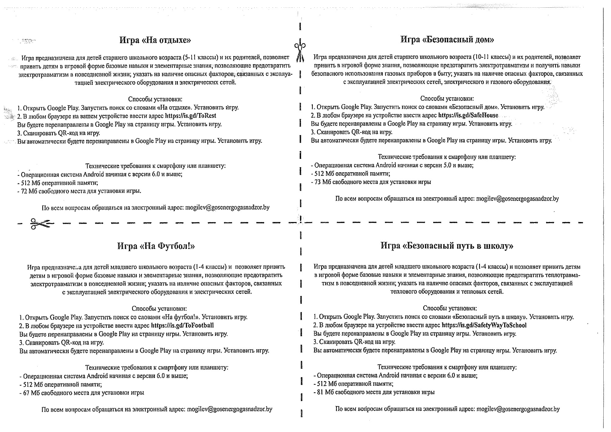 Для профилактики энерготравматизма, травматизма при пользовании газом в быту предлагаем ознакомится с профилактическими играми, разработанными госэнергонадзором (игры разработаны для платформы Android начиная с версии 6.0 и более поздней).