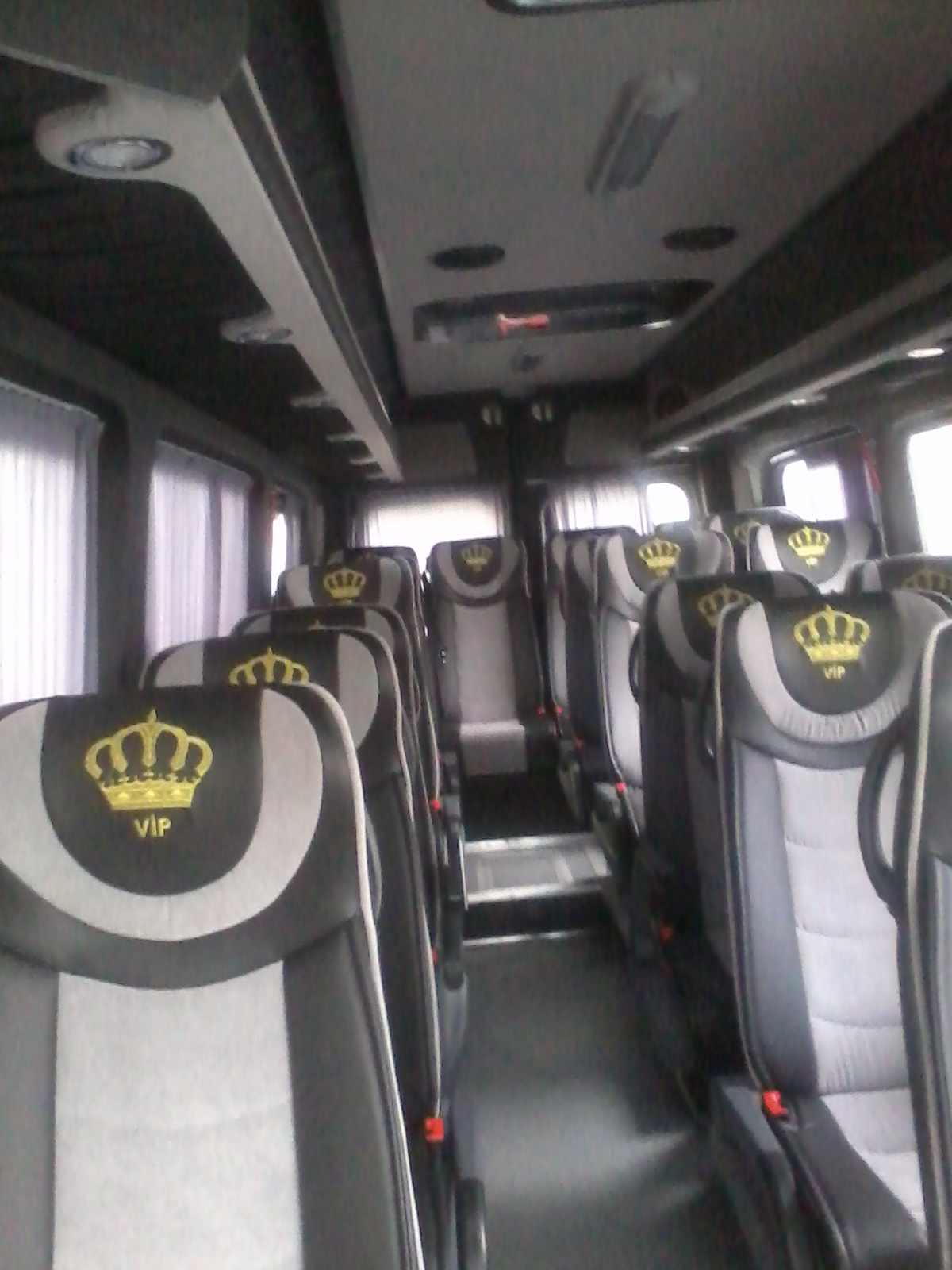 19 пассажирских мест, телевизор, багажные полки, полностью сертифицирован.