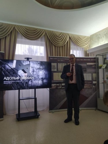 Гостем музея стал Максим Борисович Иванов, ведущий специалист Белорусского института стратегических исследований и заместитель председателя ОО «БОНПЦ «Холокост». Его выступление было посвящено трагическим событиям Холокоста, в том числе преступлениям, совершенным такими фигурами, как Адольф Эйхман.