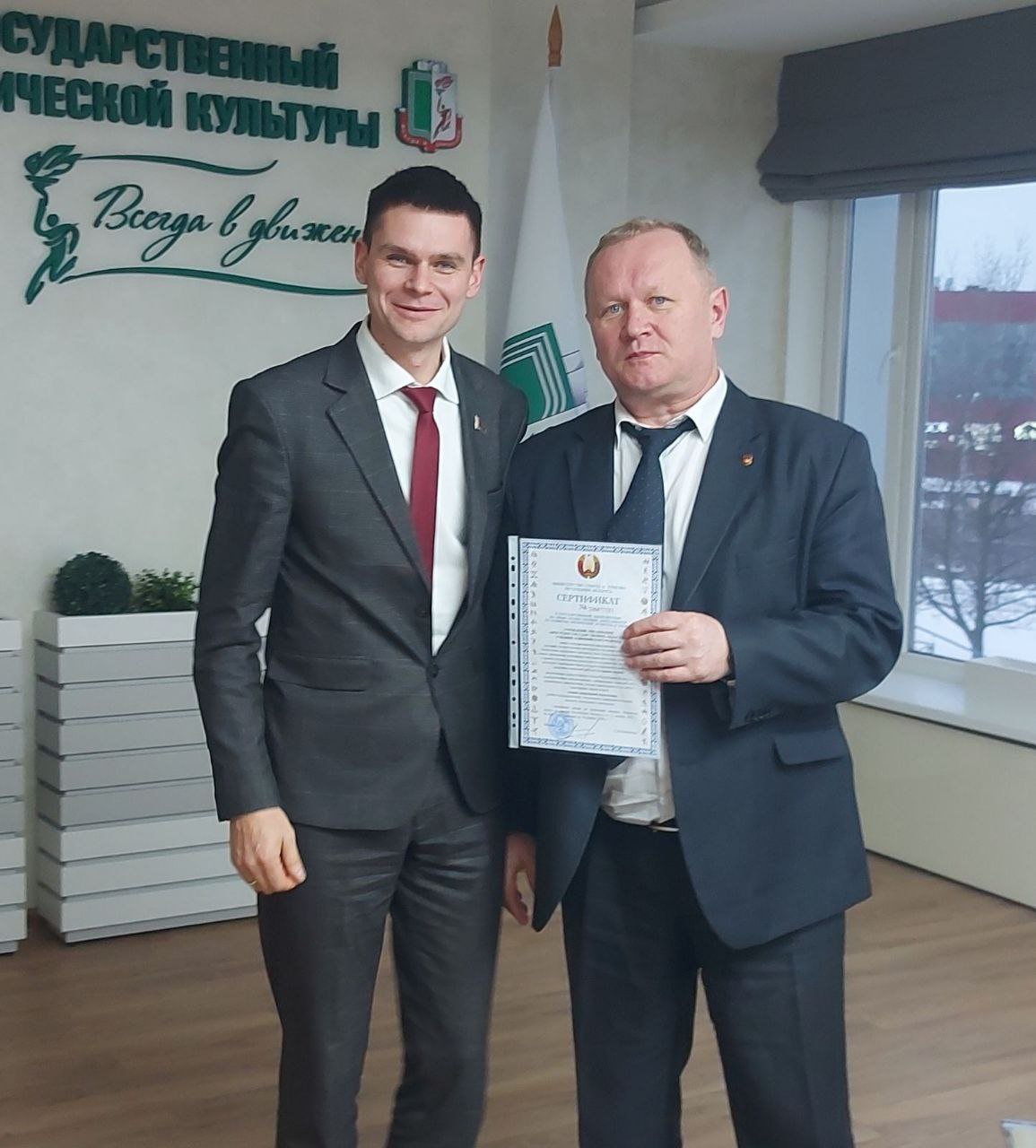 В торжественной обстановке директору Брестского государственного областного училища олимпийского резерва Виктору Николаевичу Селивонику был вручен СЕРТИФИКАТ О ГОСУДАРСТВЕННОЙ АККРЕДИТАЦИИ НА ПРАВО ОСУЩЕСТВЛЕНИЯ ДЕЯТЕЛЬНОСТИ ПО РАЗВИТИЮ ФИЗИЧЕСКОЙ КУЛЬТУРЫ И СПОРТА.
