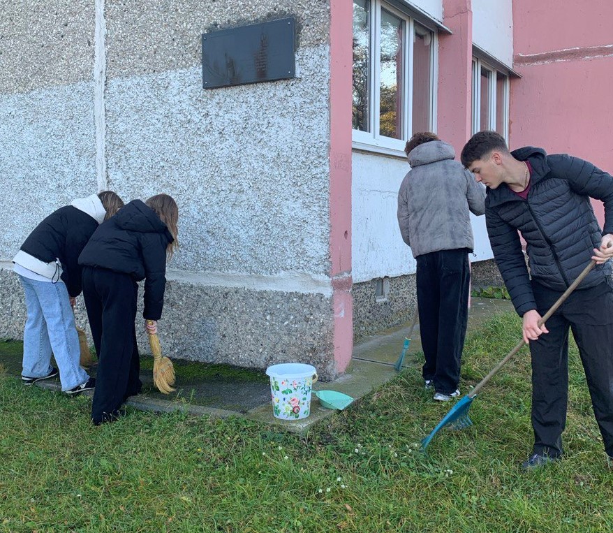 5 ноября наши учащиеся наводили порядок возле мемориальной доски писателю С.С. Смирнову — в рамках Года благоустройства и с уважением к памяти.