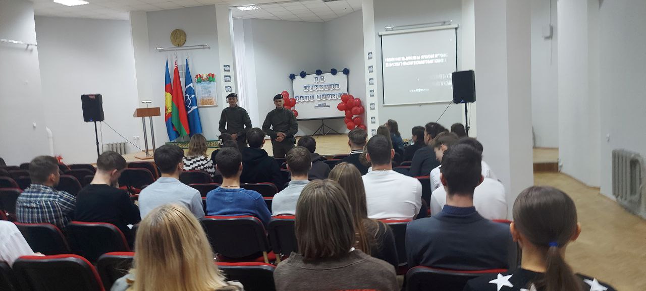 13 февраля учащиеся 11 классов и 1–2 курсов Брестского государственного областного училища олимпийского резерва приняли у себя гостей — инспекторов ОСП ОМОНа ОВД Брестского облисполкома Короткевича А.Ю. и Сипчука А.В.