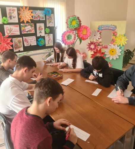 Мальчики поздравляли девочек с праздником, участвовали в кулинарной викторине, помогали разгадывать анаграммы и составлять слова, читали стихи и создавали по‑настоящему весеннее настроение. Было много шуток, улыбок и веселья — атмосфера тепла и дружбы наполнила весь вечер. Учащиеся также поздравили всех педагогических работников с Международным женским днём, подарив им внимание, добрые слова и отличное настроение.