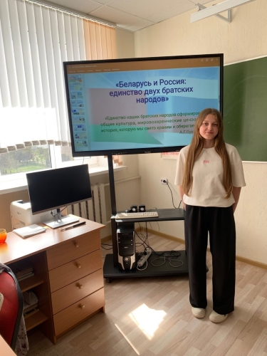 Учащиеся поделились достопримечательностями своих родных краёв и провели увлекательную виртуальную экскурсию по Смоленскому региону Российской Федерации и Брестской области. Ребята рассказали об интересных местах, памятных исторических объектах и уникальных уголках своих регионов, которые символизируют общую историю и культурное наследие наших народов.